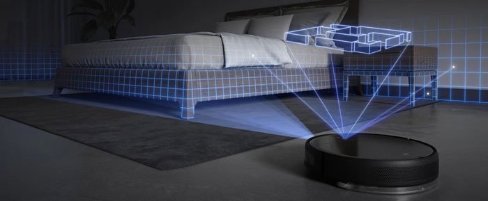 مجهز به الگوریتم VSLAM و حسگر ToF بوده و قادر است نقشه اتاق و مسیر تمیزکردن را به طور مستقل و با دقت بالا ترسیم کند. برای جلوگیری از گیرکردن ربات در فضاهای باریک برای ربات تمیزکننده سطح اتاق، دوربین ToF با یک سنسور که از دقت بالایی برخوردار است استفاده شده و میتواند اندازه فضایی که قرار است وارد آنجا شود را تشخیص دهد و در صورت تشخیص مکان با اندازهای کوچک مسیر خود را تغییر میدهد.