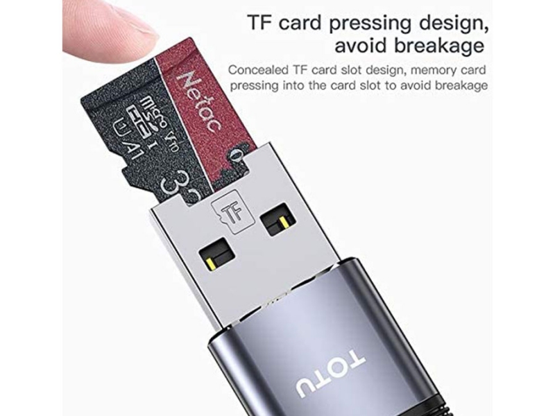 رم ریدر توتو دارای درگاه کارت حافظه microSD است که به شما این امکان را می دهد تا بتوانید اطلاعات خود را با سرعت بالا منتقل کنید. طراحی هوشمندانه این درگاه نیز به صورتی است که حالتی مخفی دارد به صورتی که محل قرارگیری رم میکرو SD درون پورت USB است.