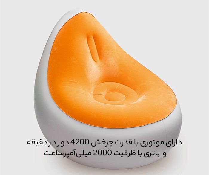 کلیدی روی بدنه صندلی بادی شیائومی طراحی شده که با زدن آن ۳ دقیقه بعد به طور کامل باد میشود. دارای موتوری با قدرت چرخش ۴۲۰۰ دور در دقیقه است و فشار هوای پایدار را فراهم میکند. میزان باد صندلی قابل تنظیم بوده و با توجه به نیازتان میتوانید آن را تنظیم کنید.