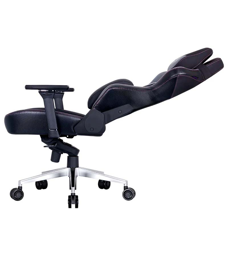 مورد دیگری که به راحتی گیمینگ کولر مستر Coolermaster CALIBER X2 Gray کمک کرده، امکان تنظیم زاویه تکیهگاه صندلی است. در واقع تکیهگاه این صندلی گیمینگ را میتوانید تا ۱۸۰ درجه خم کنید! این یعنی میتوانید حتی روی صندلی دراز بکشید، اما فارغ از این بههنگام نشستن میتوانید با یک اهرم و در راحتترین حالت، تکیهگاه این صندلی را در هر زاویهای که میخواهید تنظیم کنید.