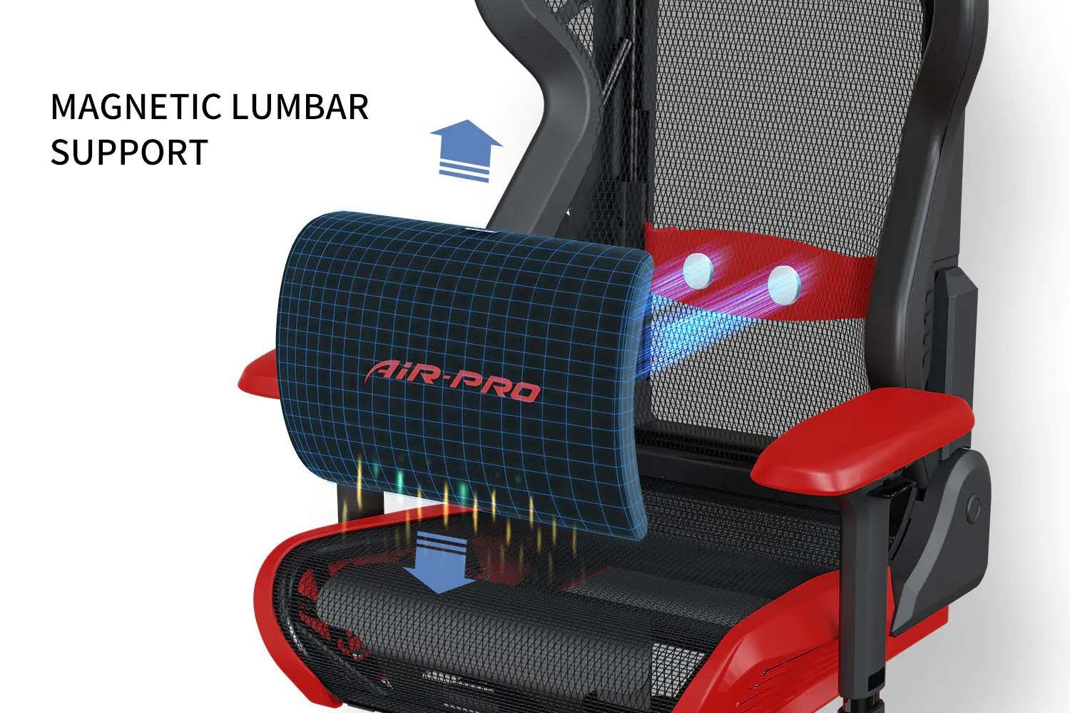 صندلی گیمینگ Dxracer Air Pro NR بهواسطهی این بالشتکها، کمک بیشتری میکند تا از رایجترین دردها هنگام نشستن – از گردندرد گرفته تا کمردرد – فارغ باشید و در عوض روی بازی متمرکز شوید. بالشتکی که مخصوص گودی کمر است و از بالشتک بالایی اندازهای بزرگتر دارد، بهصورت آهنربایی به صندلی متصل میشود و در پایین تکیهگاه قرار میگیرد. این بالشتک ظاهری جذاب و زیبا دارد و روی زیبایی کلی صندلی تأثیری مثبت میگذارد. اما مهمترین ویژگی بالشتک پایینی نه زیبایی آن بلکه پر شدناش از مموریفوم است. از مموریفوم با تراکم بالا برای پر کردن این بالشتک استفاده کردهاند. این مموریفوم باعث میشود که بالشتک به بهترین شکل نسبت به نیرویی که از سوی کمر شما به آن وارد میشود واکنش نشان دهد و بهخوبی به راحتی کمر شما کمک کند.
