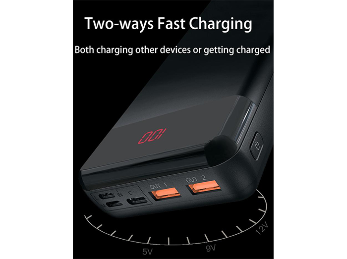 شارژر همراه یا پاور بانک، نیاز اصلی روزانه برای کسانی است که از گوشی های هوشمند استفاده می کنند. شارژ گوشی ها، با توجه به تماس ها و استفاده هایی که از آن داریم، در هر زمانی می تواند تمام بشود. مخصوصا این که از ابتدای روز هم شارژ کافی نداشته اند. شارژر های همراه شما را از پیدا کردن یک پریز خالی، بی نیاز می کند. پاور بانک Yoobao 30W، با توجه به ظرفیتی بالایی که دارد، سبک و کم حجم است. با این پاور بانک می توانید، دو گوشی را به طور همزمان شارژ کنید. در قسمت بالای این محصول یک صفحه نمایشگر وجود دارد که میزان شارژ محصول را به ما نشان می دهد تا بسیار راحت بتوانیم به شارژ پاوربانک خود را مدیریت کنیم.