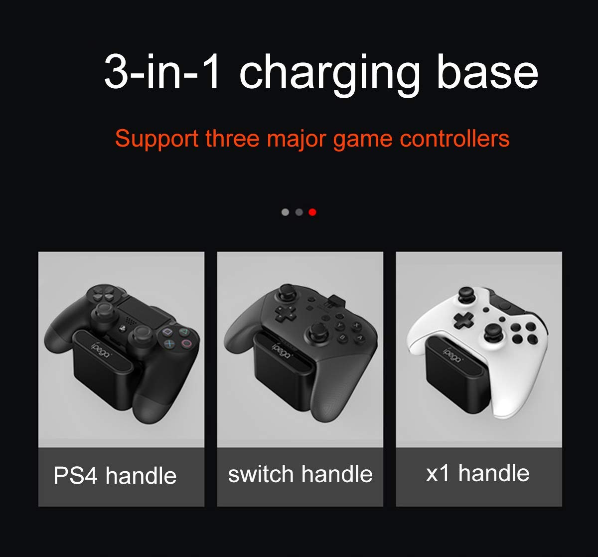 پایه شارژر سه کاره ipega میتواند کنترلرهای پلی استیشن ۴، ایکس باکس وان و نینتندو سوییچ را شارژ کند.